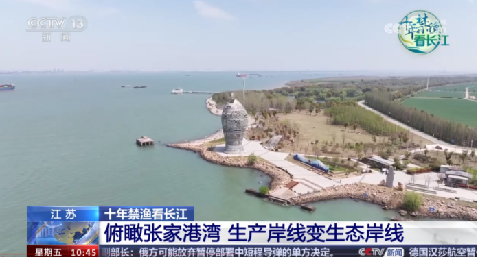 近日,央视新闻频道《新闻直播间》《十年禁渔看长江》特别节目聚焦张家港,从空中俯瞰双山岛的壮丽美景,展现了生产岸线变生态岸线的精彩蝶变。