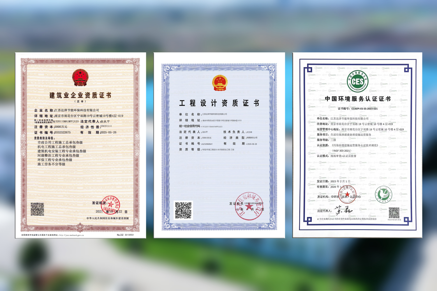 专——专业化,聚焦水环境治理领域。达泽环保18年来专注于水环境治理领域,凭借专业的技术团队和多年的经验积累,我们在垃圾渗滤液、医院污水、生活污水、河道治理等众多水处理领域取得了显著成果,拥有9项行业资质,60+专利证书,我们不断研究新技术、新工艺,致力于解决水环境治理中的难题,推动行业的进步与发展。
