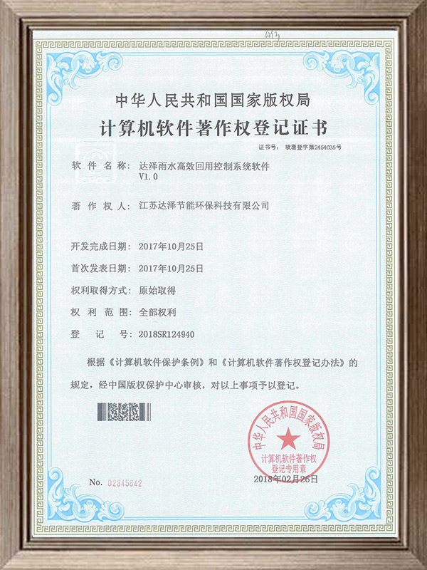 达达泽雨水处理站远程监控与操作运营系统软件软著证书