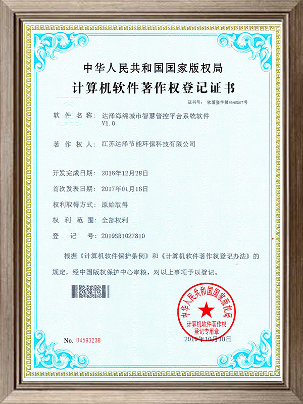 达泽农村污水处理站远程监控与操作运营系统软件软著证书
